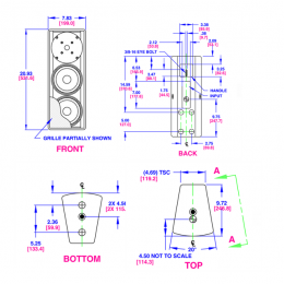 考 慮美觀因素,有泡沫襯墊的網罩遮住驅動單元。音箱頂部、底部和側面都設有安裝點,便于利用吊環螺栓或者配套支架把音箱安裝在任何結構中。另設的安裝點能配 合OmniMount® 30.0 系列或類似支架,也可配合第三方的外部支架適配接頭,如K&M195/8或Ultimate Support? BMB-200K進行立桿安裝。標準顏色有黑色和白色。可以定制其他顏色。