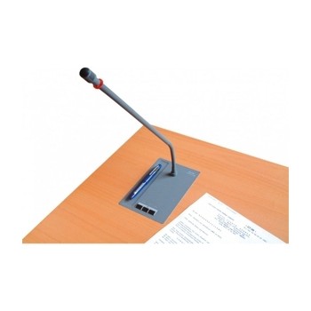 MCS 503主席話筒單元包括一個麥克風按鈕,在蓋板的一個優先按鈕和一個清晰的按鈕。麥克風按鈕操作正常的開關和關閉的麥克風。主席不取決于開啟話筒數量有限(提名)。使用優先級按鈕,主席可以介入到討論和靜音或清除激活的代表麥克風單元,根據系統配置。使用清除按鈕,所有激活的代表麥克風單元被關閉。準備談論麥克風的狀態是由被照亮的紅色環和綠色發光的麥克風按鈕。該單元的圓形邊允許平齊臺安裝。