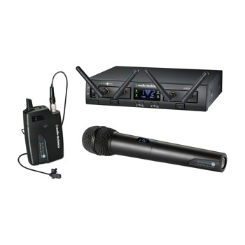 ATW-RC13機架安裝接收器的底盤,ATW-RU13 X2接收單元,ATW-T1002手持動單向麥克風/發射器和ATW-T1001 UniPak變送器MT830cW領夾式話筒。