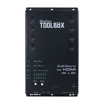 對于HDMI 4K x 2K的gefentoolbox 6X2矩陣是一個小巧輕便的替代安裝在機架上的矩陣。它允許多達六的超高清4K、1080P全高清片源被路由到兩超高清顯示器。該產品支持分辨率高達4K(3840 x 2160 @ 60Hz 4:2:0 30Hz或4:4:4)和4K影院(DCI)(4096×2160 @ 24或30Hz 4:4:4)。顏色深,3DTV的經過,以及無損音頻格式如LPCM 7.1,Dolby TrueHD和DTS-HD音頻,還支持。除了通過HDMI,數(shù)字音頻也可以通過兩TOSlink光纖連接器使用的數(shù)字音頻輸出。每一個超高清的源可以被路由到所連接的顯示器使用前面板按鍵控制,包括紅外遙控,RS-232串行控制接口,或通過使用Telnet,IP,UDP,和內置的Web服務器接口。LED指示器頂部面板上顯示當前的路由狀態(tài),F(xiàn)ST模式,音頻配置,和EDID設置。