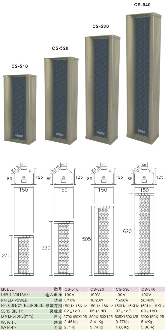 • 全天候戶外音柱聲音通透亮麗,其外殼是由鋁鎂合金制成,可抵擋日照雨淋、風沙雪雨,適合在戶內、戶外長期使用。如公共場所、超級市場、學校、車站、等……