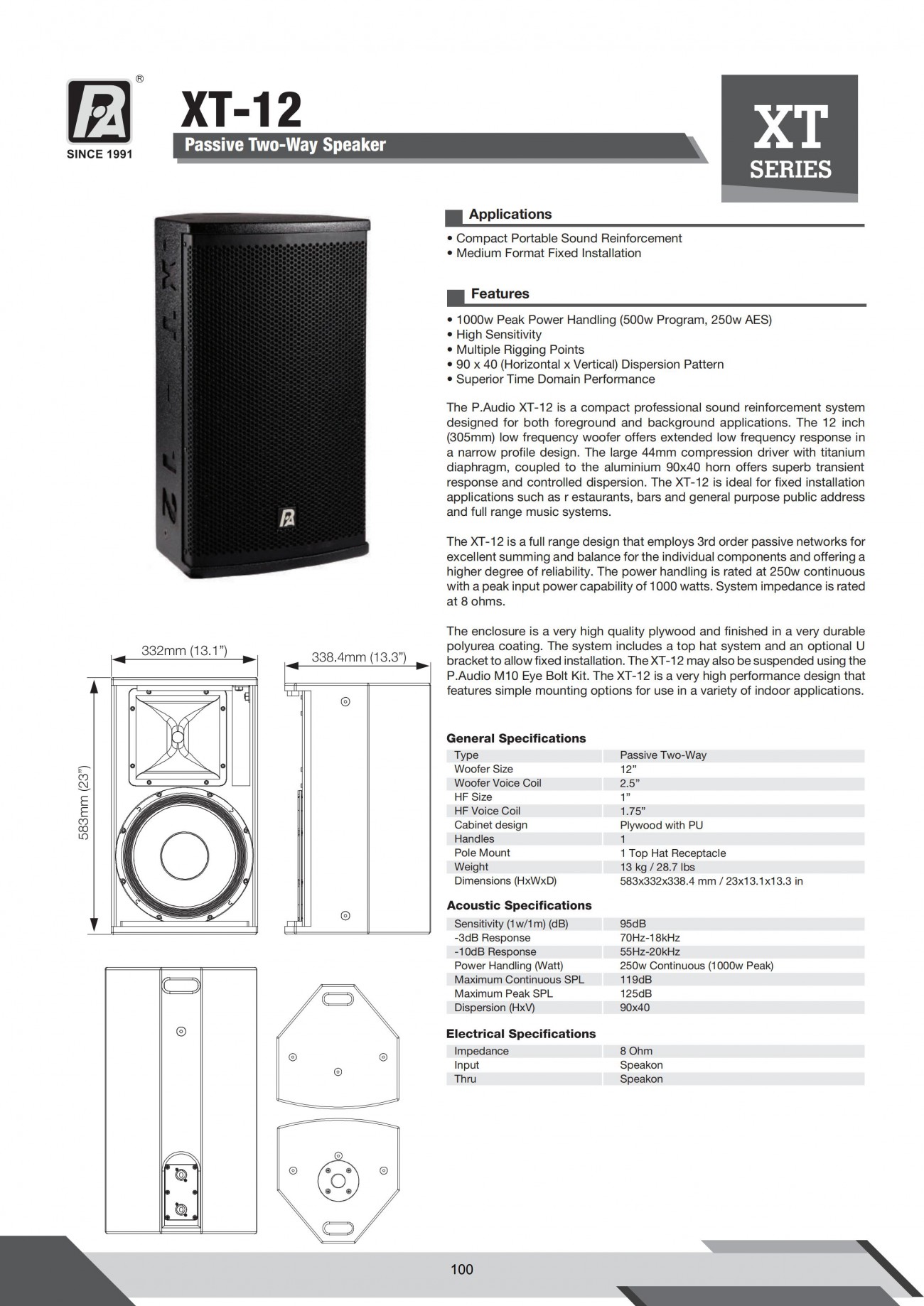 -3dB頻響:45 Hz - 120 Hz