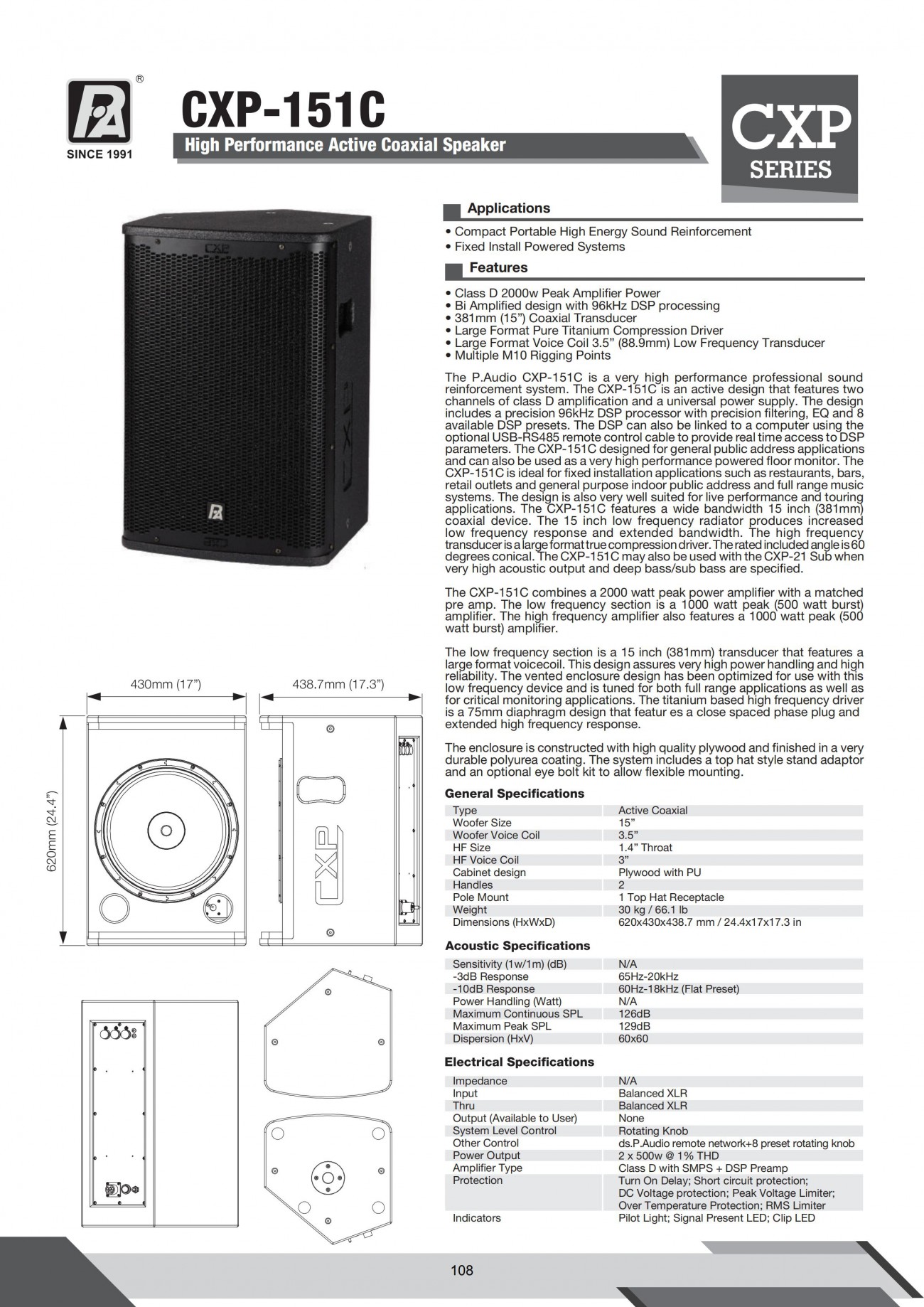 -3dB頻響:60 Hz - 20k Hz